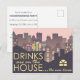 Diseño creativo de invitación al estilo personalizado para un fiesta de la casa para celebrar el nuevo hogar de algunos, las bebidas están en la cita de la casa incorporada en el Diseño. En la parte superior de la casa se muestran cócteles. Personaliza el texto.