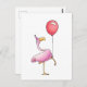 Featuring a pink flamingo wearing a party hat and holding a red balloon, this playful design is perfect for anyone who loves animals, quirky art, and cheerful birthday wishes.