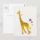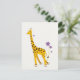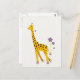 Postal lindo con una graciosa jirafa coqueteando sobre una flor violeta y sosteniendo algunas flores con su cola mientras patinan con patines de rodillos que las ruedas están hechas de flores. Otros productos con este diseño: