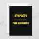 El texto amarillo en negrita afirma humorísticamente que "la estupidez no se considera un impedimento" y aconseja "estacionar en otra parte" contra un fondo negro. El mensaje critica el comportamiento inapropiado del estacionamiento con un tono sarcástico.