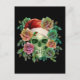 POSTAL FUNNY SANTA GREEN SKULL Y FLORES DE NAVIDADES