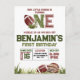 ¿Listo para una fiesta de cumpleaños de fútbol? Este diseño presenta elementos de acuarela pintados a mano, como un casco de fútbol y un balón de fútbol, junto con la tipografía "First Year Down" y "Little Rockie". Todo el texto es editable en esta tarjeta postal económica de cumpleaños y también están disponibles las invitaciones. El diseño es adecuado para niños y es totalmente personalizable para un cumpleaños de 1 año, 2 años y niños mayores. Encuentra artículos coincidentes en mi tienda.