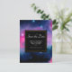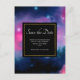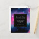 La boda salva la postal de fecha con un hermoso diseño abstracto en rosa y azul. Estrellas blancas salpicadas a través de esta imagen del cosmos. Un rectángulo negro sobre la parte superior con el texto dentro. Trippy y fresco.