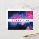 Tarjeta postal de agradecimiento con un hermoso diseño abstracto en rosa y azul. Estrellas blancas espolvoreadas por toda esta imagen del cosmos. Trippy y genial.