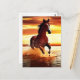 Postal en un retrato de un hermoso caballo salvaje galopando a través del surf, contra un cielo atardecer