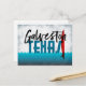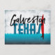 Diseño de surf Galveston Texas. Una tabla de surf roja con texto azul y turquesa - tema de la tipografía surfista.
