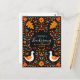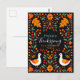 Comparte la esencia del otoño con esta hermosa tarjeta postal de Acción de Gracias inspirada en el arte popular. El diseño presenta dos encantadoras gansas blancas con pechos de patrón naranja, rodeadas de una vibrante tapicería de hojas de arce naranja, bayas rojas y amarillas, y follaje azul turquesa ondulante. Contra un fondo oscuro, esta tarjeta postal personalizable es una forma perfecta de enviar un mensaje sincero de gratitud, capturando el rico y abundante espíritu de la temporada.