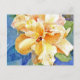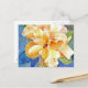 Gran gardenia amarilla brillante sobre fondo azul profundo. Tan fresco que creerás que puedes sentir el rocío matutino. De la colección de acuarelas de Katherine Foltuz.