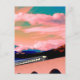 Un tren futurista negro sube un puente rosado sol-pintado a través de la garganta escénica de Columbia. Sombra del cielo y de las nubes con azul, la turquesa y el rosa. ¡En el mismo estilo que posters del viaje del art déco, el regalo perfecto para el arte, tren y amantes del paisaje! Pintado en Photoshop.