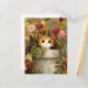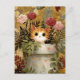 El gatito naranja adorable emerge de una olla de cerámica entre hojas exuberantes y flores coloridas, creando un ambiente artístico y caprichoso.