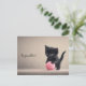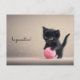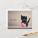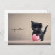 Esta es una linda postal con una foto de un gatito negro jugando con una bola rosa de lana. Hay un mensaje predeterminado positivo de que se puede personalizar "ser conciliador".