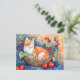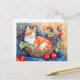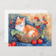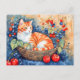 Postal Gato acuarela en cesta con cerezas