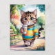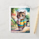 Un lindo y gracioso gato caminando por el parque sosteniendo una bebida de arte generado por IA