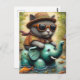 Un lindo gato gracioso monta en una flotante inflable de elefantes mientras explora el arte generado por el río AI
