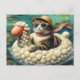 Un lindo gato gracioso monta una flotante inflable de ovejas mientras explora el río mientras los peces nadan por debajo del arte generado por IA