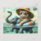 Postal Gato adorable en un elefante inflable en el lago