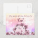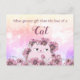 Lindo gato blanco acuarela con flores rosadas y moradas - tarjeta postal perfecta para cualquier amante de los gatos!