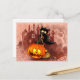 Un Personalizado de gato divertido parece muy asustado por una calabaza de Halloween espeluznante, y trepando en una escoba de brujas para escapar. Arte vectorial original Derechos de autor BluedarkArt ElChameleonArt.