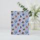 Postal Gato Atigrado Azul Lunares Gatito Acuarela