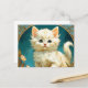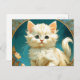 Postal con un gato blanco al estilo Art Nouveau de Alphonse Mucha! Un felino blanco acentuado mira fijamente al espectador contra un fondo azul. ¡Un gran regalo para los amantes del gato y de los coleccionistas Art Nouveau!