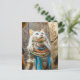 Postal Gato blanco como alto sacerdote en el trono