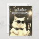 Postal Gato blanco con gafas de sol brindando por Cumplea