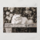 Postal Gato blanco en el jardín de flores