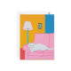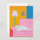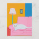 Postal Gato blanco en un sofá rosado
