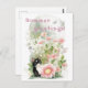 Postal Gato blanco negro en un jardín floral
