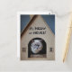 La postal presenta la imagen de un gato serio que lleva gafas negras mientras mira hacia afuera de la casa. El texto dice "¡Es GATO o Nunca!"