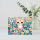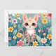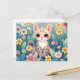 Postal Gato Bonito en Jardín Rodeado de Flores Pastel