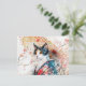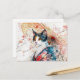 Postal Gato Calico Geisha con paraguas rojos en tinta chi