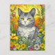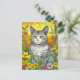 Bonito colorido gato caprichoso y flores de arte floral amarillo.