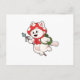 Postal Gato como recolector de champiñones con champiñón