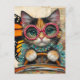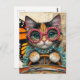 Un adorable gato hada con alas de mariposa lleva gafas de puntos polka de tamaño excesivo y conduce un auto un lindo collage de estilo mixto de medios