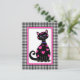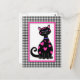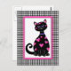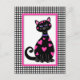 Este gatito caprichoso está cubierto de corazones rosas y tiene un marco rosa con un borde de gingham negro.