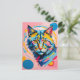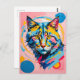 Postal Gato de arte de línea geométrica negrita