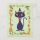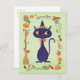 Un gato mágico, negro, tira al gorra de una bruja puntiaguda rodeado de flores caídas, delicadamente colocado sobre un fondo verde menta. Twinkle Spice es el gato de la buena bruja. A ella le gusta jugar en el parche de calabaza en Little Paper Farm y jugar al frolic en todo el esplendor del otoño. Ilustracion original de Noël Snow.