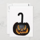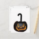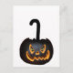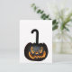 Los ojos verdes del gato negro miran hacia afuera de una calabaza negra y naranja con la cola pegando la mejor postal de la foto de Halloween