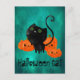Bonito diseño de gatos negros con calabazas talladas en gatos. Niza Arte Halloween - lindo y divertido, perfecto para cualquier fiesta de Halloween infantil, disponible en muchos productos de Zazzle en nuestra tienda que pueden ser buenos regalos para los amantes del gato. Después de todo, el gato lindo es una de las mejores ideas de regalo para gatos. "¡Feliz Halloween!" dice el gato (o meows:) El texto es personalizable.