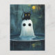 Postal Gato de Halloween y fantasma en el grupo