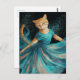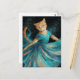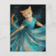 Un gato de cuadros de jengibre baila con un vestido azul arte de fantasía