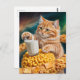IA generó arte de un adorable gato con un vaso de leche en un planeta hecho de macarrones
