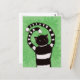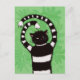 Postal de primavera de gatitos malvados con un ilustracion digital que representa a un gato blanco y negro a rayas personalizados con raras patas enrolladas, hojas verdes detrás. Este divertido diseño primaveral atraerá a una loca dama de gatos y a todos los amantes de los gatos que también les gusta un poco de tristeza.