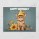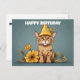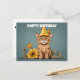Este es un diseño generado por IA. Se supone que es un gato asiático en un bosque. Quería que el gato asiático de oro llevara un gorra de cumpleaños. Y pensé que sería bueno tener girasoles en el diseño.