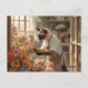 Postal Gato de otoño con flores - Saludo de temporada de