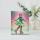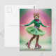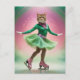 Postal Gato de patinaje sobre hielo adorable en verde y r
