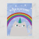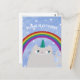 Unicornio de gato de garrapata, personalizado y divertido, y postal de arco iris, con cielo azul acuarela lleno de estrellas y cita personalizado. La elección perfecta para el cumpleaños del chica.