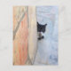 Postal GATO DETECTIVE DETRÁS DEL MURO DE PIEDRA / Día del