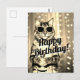 Foto divertida de gato fiestero con gafas de sol sosteniendo un vaso de bebida. Una forma única y divertida de desearle feliz cumpleaños a alguien.